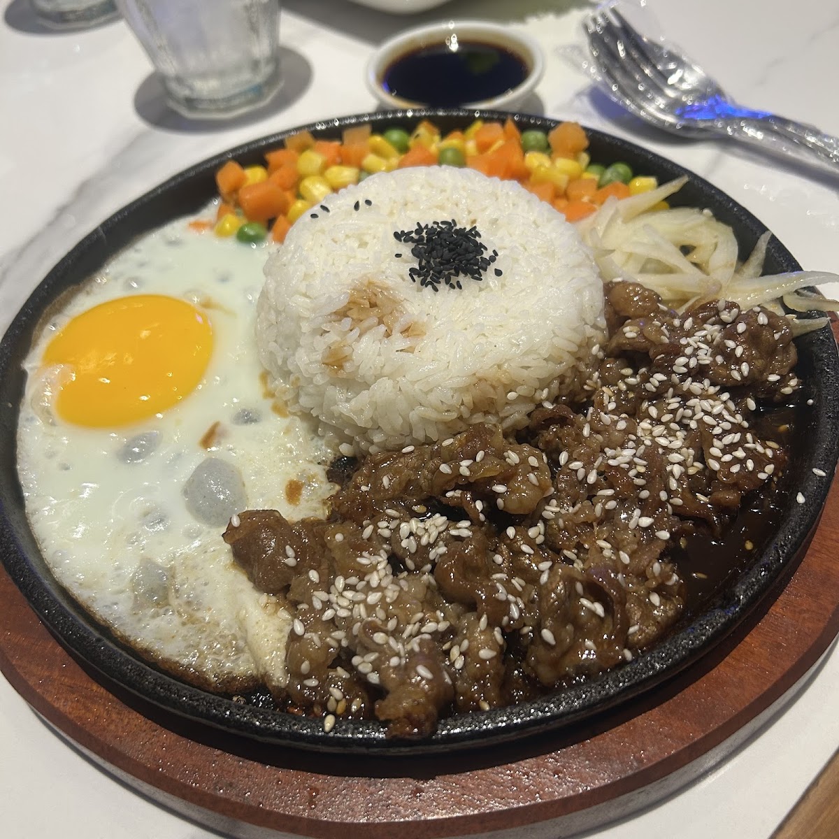 At PAPADA CAFE, the menu offers a tantalizing array of Indonesian delights. Signature dishes like the Iga Bakar Kecap feature succulent beef ribs braised to perfection with a unique blend of sweet soy sauce and aromatic spices, served alongside a comforting bowl of broth and warm steamed rice—a must-try for any meat lover at just IDR 55,000. For a satisfying crunch, the Chicken Katsu Hot Plate is an excellent choice. Crispy chicken katsu served atop a hot plate with fluffy rice, a sunny-side-up egg, and fresh vegetables, drizzled with zesty barbecue sauce, elevates your dining experience to new heights, priced attractively at IDR 35,000.